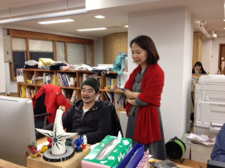 紙を箱みたいに折って、 くず入れにして食べます。 「お食べよ」 とすすめてくれましたが、 永田の食べるスピードが早すぎて 私が口にいれたのはふたつでございました。
