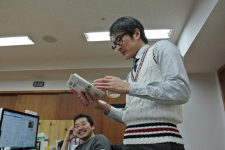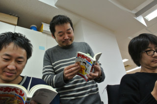 あ、そういえば が持ってる 本の表紙、 宇宙部の乗組員3人が モデルになってるんですって。