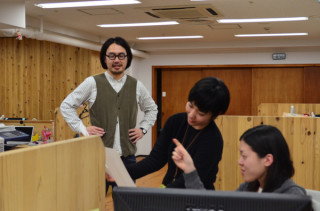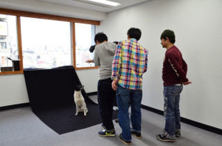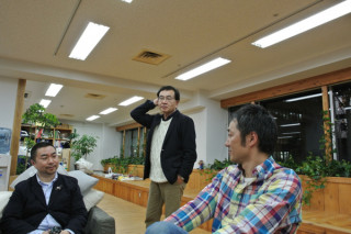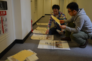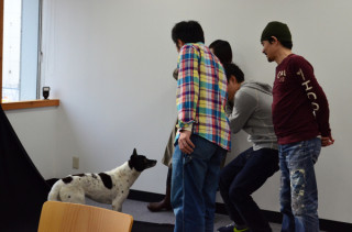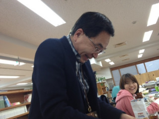 といっしょに 中央のテーブルで 明日の目次のメニューの 並べ替えをしていると、 鳥が‥‥いや、人が、 寄ってきました。