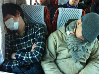 みんながバスに乗り込むと、 タイミングをはかったかのように、また雪に。