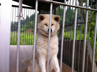ところで土楽には どうぶつが3びきいます。 秋田犬の「ヤン」と、 ねこの「はなこ」と「こはな」。
