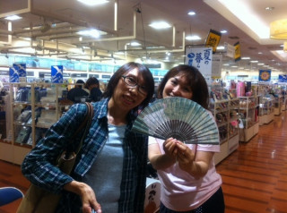 この方、いろんなものをご愛用いただいているそうです、ありがとうございます!コップをひとつひとつ手で持ってみて、決めていかれました。扇子も一緒に。快適な夏をすごしてくださいねーーー。