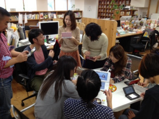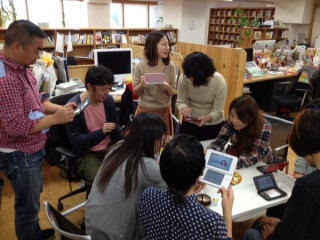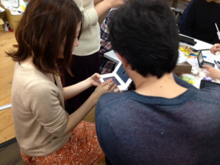 『「どうぶつの森」は みんなで遊ぶとたのしいよ』 ということで、 みんなですれちがい通信の設定中。 「フレンドリスト」というのに お互いに登録し合うんですね。