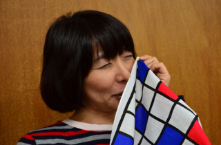 (写真2枚目) りかスがこぼしたお茶を拭く、 若者たち。 (あまりに派手にこぼしすぎて りかスは服を着替えにいきました)