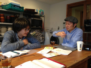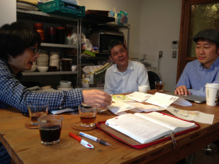 今日は、「コーヒーでものみながら」 ということにいたしましたので、 キッチンで会議です。 机もあるしね、ちょうどいいのよ。