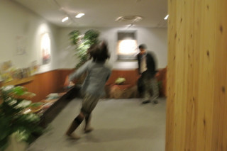 この後、弊社のロビーに 「どうかお許しを」 という声が響きわたり、 さきほどまでなかよく KARAダンスをくりひろげていた 躍動感あふれるハッピーアワーは 一瞬で終わりました。