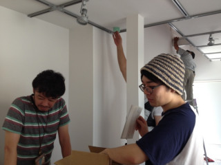 さてさて、工事中の方々にまじって、 レジの設置です。 意外とスムーズに設置ができて、 これは大変いい兆しです! というか、宇宙部の人 (今日は )がいると、 ネットワークって言うこと 聞いてくれるんですよね〜。 不思議だ。