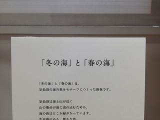 写真1、2枚目は、 気仙沼の海の色をイメージした 「冬の海」と「春の海」。 どちらも深みがある色で、 明るい色の服にも、 渋い色の服にも合いそうだなぁと 思いました。