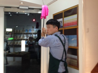 ※モギの横に立っているのは、 TOBICHIの店員さんになる フランス人のサブちゃんです。 日本語ぺらりんこの、 店員経験も抱負なイケメン。 |