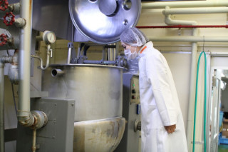 今回は、この冬に販売する予定の あたらしいジャムを、 サンクゼールさんの工場の釜で 実際に作ってみるという 「釜試作(かましさく)」という工程。 機械で瓶詰めもしてみました。