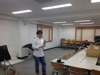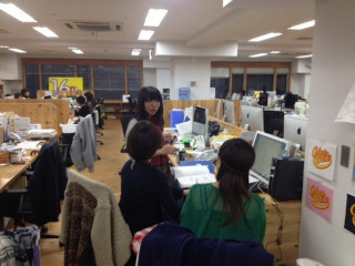 後ろを通りがかる同僚が 「なにしてるんですか」 と声をかけていきます。
