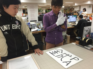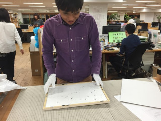 さきほど あざやかに切り取った「金成PA」を 田口が額に入れていまいります。