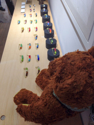ところで、在庫ですが、 Petrさんのくびまきどめに 完売のデザインがあり、 Micoさんのくびまきピンも おおぜいのかたに ご購入いただきましたが、 まだだいじょうぶ、お求めいただけます。 shinoさんのくびまきピン、チョーカーは 画像のとおり。 (きょうの営業終了時のようすです)。 潤沢ではないけれど、まだありますよ。 気になるかたは、どうぞおはやめにー! あす15日土曜日も、 おひるの12時にオープン、 20時までの営業です。 |