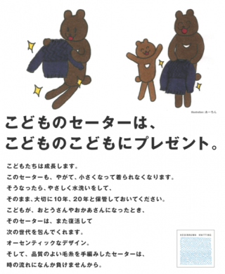 16日まで伊勢丹新宿店の本館で、 気仙沼ニッティングの 「こどもエチュード」を 手にとり、購入することができます。