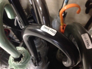 本日、東京は、 みぞれまじりの心ですが、 弊社の玄関にある傘立てには 「TAKE FREE」というシールが 貼られた傘が何本かあります。