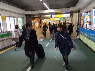 おはようございます。今日は、気仙沼で行われるさだまさしさんのコンサートを生中継する予定です。早朝の新幹線に乗りまして、中継チーム、一関駅に到着しました。これから気仙沼に向かいます。今日はめずらしく宇宙部の3人が勢ぞろい。外部からのライブ中継って、久しぶりだからね。あ、でも、今回、3人のうち、大のさだまさしファンである多田は宇宙部の技術的な仕事よりも読み物的な仕事がメインかも?