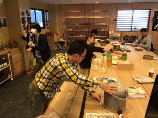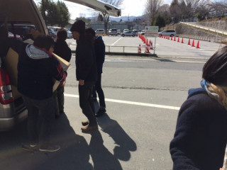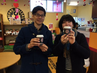 一関から気仙沼への道中で、立ち寄る場所といえばここです、アンカーコーヒー。福田利之さんがデザインしたおなじみのカラフルなパッケージも並んでます。今日の中継チームは7人。そのうち、岩黒くんとももちゃんがはじめての気仙沼です。