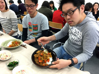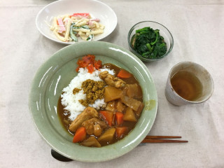 こちら、東京の「ほぼ日」です。今日は火曜日、給食の日で、メニューはカレーです。自分でごはんとカレーをつぐ方式だったので(鶏肉は3こまで、と定められていました)くんのカレーはすっごい大盛りになってました。トッピングにカレーの恩返しとひき肉をいためたものが用意されていました。にんじんと大根がごろごろ入っているカレーでした。大根のあまみがじんわりしてとてもおいしかったです。