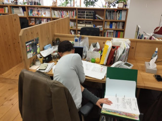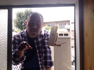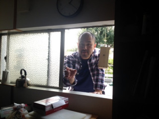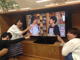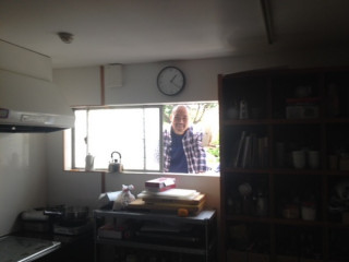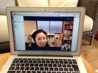 いつも行われる縁側での 朝のミーティングと、 その横のテレビ前で行われるミーティングが 時間的にバッティングした場合には、 ちょっとの間、 中断しています。 が、 今日は、さんま寄席チームが Skypeで