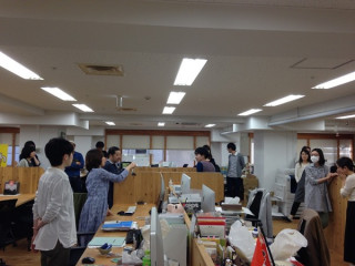 今日の朝のミーティングは、 ふわっとした場所で行われました。
