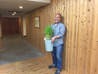 の着ているシャツの色が なんだかとてもきれいです。 地味といえば地味なんだけれど、 目を惹く感じ。 「やえちゃん、そのシャツ‥‥」 と声をかけてみたところ、 「よくぞ訊いてくださいました!!」。 先日、プライベートで遊びに行った 奄美大島で「泥染(どろぞめ)体験」を してきたというのです。