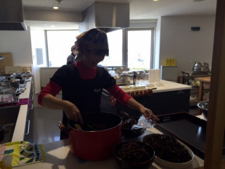 さんがチョコレートをくれました。 すっぱくてさわやかなコーヒーに、 雑穀っぽいクッキーのついたチョコがあう!