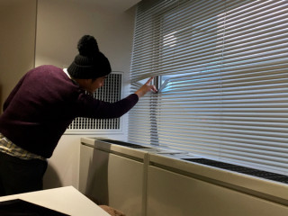 キッチンからの夕景がすばらしいので 手持ち無沙汰な が ボスみたいにブラインドをずらして 空を見ていました。