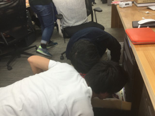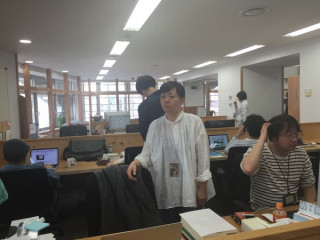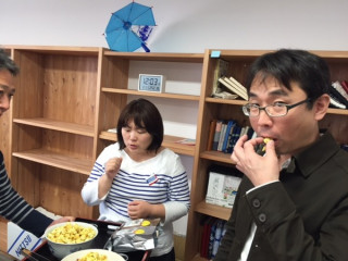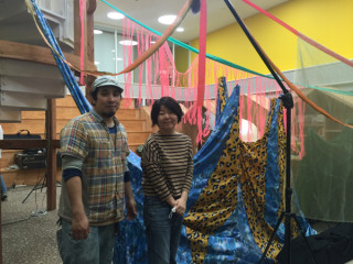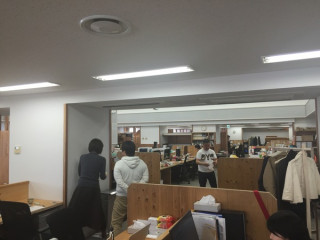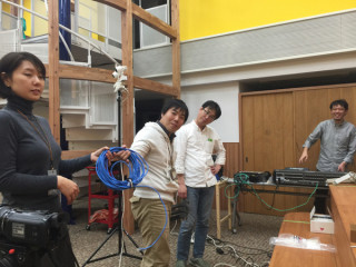 先ほど、 福山さんたちが セットの設営を完了。 せっかくなので、 完成したところは 明日みてもらうとして、 福山さんたちとは、 セット裏で記念撮影を。