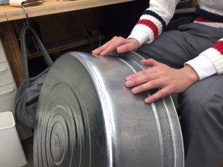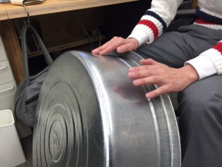 金だらいで、ビートを刻んでいるのです。