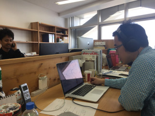 弊社ではヘッドホンをしている、