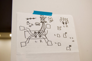 謎の設計図のようなものを書きながら
