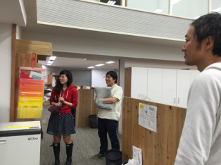 1階は、 イイダ傘店のテキスタイルをつかった グッズショップになります。 リュックとか、ハンカチとか、 これがまたかわいいのです…! 写真でお伝えできなくて、すみません。