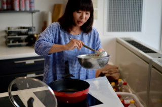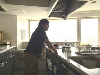 キッチンで が コーヒーをいれるのをじーっと待ちます。