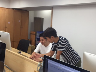 デザイナーの と (この人はよく知ってます)、 先週からほぼ日にやってきた、 中神(ナカガミ)さん。 苗字が「神」なので、なんだかさっそく 「ゴッド」と呼ばれています。 職業はフロントエンドエンジニアです。