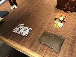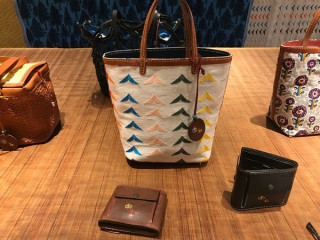そして、中に入ると、 なんとまあ! すてき! なんとすてきで、自然なコラボでしょう。 ミナペルホネンのテキスタイルと アンリークイールのレザーが、 ぴったり。