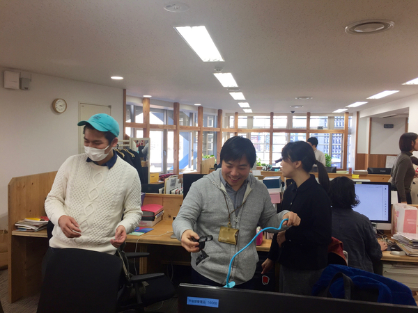 明日の撮影のために、 事前確認のミーティングをしていました。 みんなで話しあいながら 「あれも持っていこう」 「これも準備しとかなきゃね」 と話していたところ、