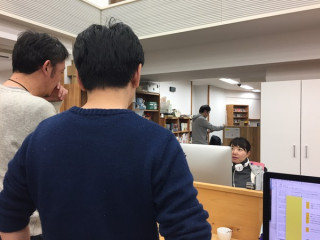 さっそくみんな、 窓から顔を出してみたり、 触ったり、自分の身体をもとに そのサイズを測ってみたり。 大きな箱状なので、 なかに入ったり、外に出たり、 またなかに入ったり。