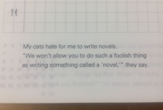 (猫はぼくが小説を書くのが嫌いなんです。 「小説などというバカなものを 書くことは許さない」と言うんです。)