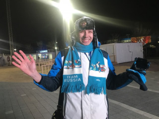 ロシアの方は、マフラーにこれまでの オリンピックのピンバッジをつけていて とーーってもうらやましい!