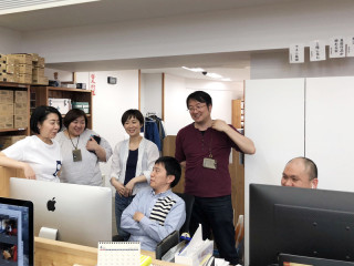 そして。 去年の「SWITCH ほぼ糸井重里特集」の 表紙の一部を大胆に出力して、 ブイヨンといっしょに 写真を撮れるコーナーも ご用意していますので、 よろしければおためしくださいね。 ( も笑顔です。 晴れていれば、外に設置しています)