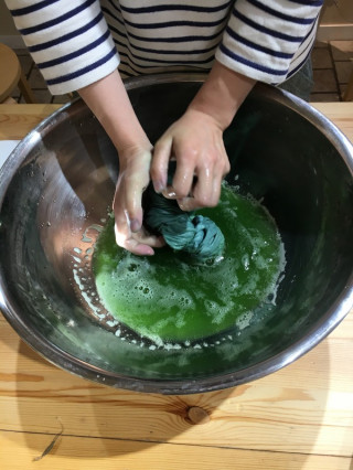 「新鮮な葉を刈り取り、すぐに染液をつくる」