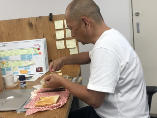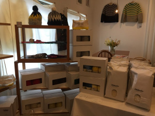 おはようございます! 国立・foodmoodでの 「Miknits新作おひろめオフ会」 オープンしました! あいにくの雨模様ですが、 朝から多くのお客さまに 来ていただいています。