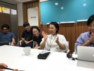 が着てる 黄色いかわゆるTシャツは、 レ・ロマネスクさんのグッズですよ。 多分今日これも販売するのかな? みんなでおっくんのギターを見にいきましょう〜。 |