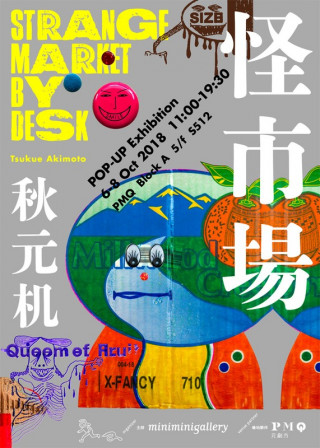 ●香港 "怪市場 / Strange Market" POP-UP Exhibition by Tsukue Akimoto (Desk) 会期: 2018.10.6-10.8 会場: PMQ (block A 5F S512) 住所: 35 Aberdeen Street, Central, Hong Kong 主催: miniminigallery http://www.pmq.org.hk/