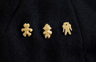 そして、ピンですが。 私はこのBaseball capが大好きです。 これまた意外なところにピンがついているのです。 キャップの後ろの位置についているので、 キャップのつばが正面になって、 みょうなおかしみが出ます。 普通は、キャップっていうと 横向きじゃないんかい! と思います。 その他も、鍵じゃなくて、鍵穴だし。 あ、ワイングラスと本と傘は たいへんベーシックですね。