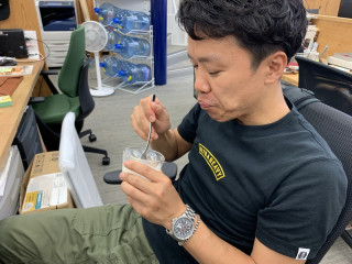 浅生鴨先生が、 お仕事で事務所に来られています。 あいかわらず、 私の席の前に座っておられます。