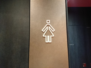あたらしいこういう建物って、トイレなどのピクトグラムを見るのも楽しみではないですか?わたしは好きです。新生PARCO、8階の化粧室、このようになっておりま〜す。横には、電光掲示板。