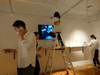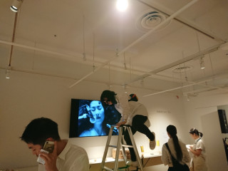脚立プレイする光井と、矢野顕子さんとのコラボ。今夜のレセプションに向けて、準備がすすんでおります。