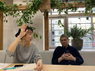 そして、取材がおわった は、 今度は、 のところへ 何気なく座った。