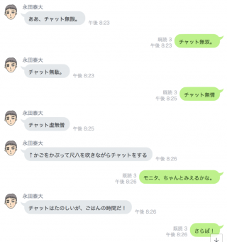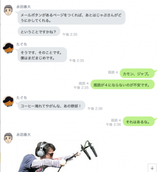 チャットだと人の気配は 既読がつくかどうかだけがたよりなので、 へんな濡れ衣も着ることがあります。 きほん、 さんは なぜかいつも濡れ衣を着るタイプです。 彼のクローゼットには濡れ衣が びっしりと吊るされていると言われています。 この日もコーヒーをのんでいたわけでは ありませんでした。